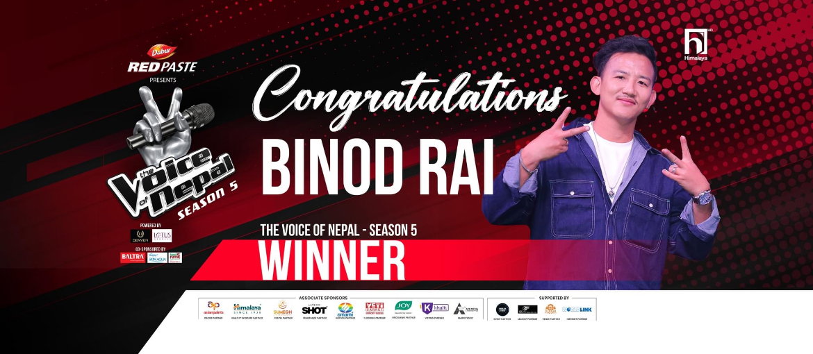 टोक्यो,जापान:ललितपुरको गोदावरीस्थित सनराइज हलमा शुक्रबारको अवसरमा भएको ‘द भ्वाइस अफ नेपाल’ सिजन–५ को फिनालेमा बिनोद राईले शानदार प्रदर्शन गरी उपाधि हासिल गरेका छन्। उनले टिम मिलन नेवारबाट फाइनलमा प्रवेश गरेका थिए। उपाधिको साथै, उनले २० लाख नेपाली रुपैयाँको नगद पुरस्कार पनि प्राप्त गरेका छन्।